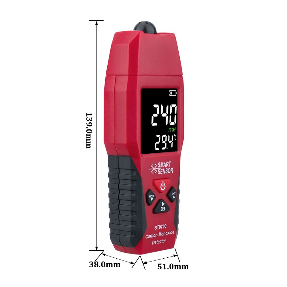 SMART SENSOR ST9700 Handheld kolmónoxíðmælir með CO-gas loftgæðaprófara Skjárskynjaramælir Handheld CO própan gasmælir